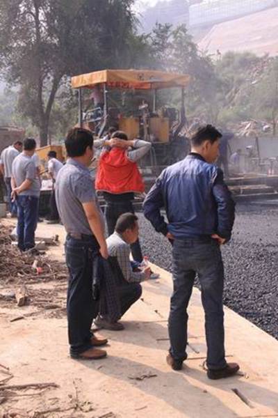 圖1—2為攤鋪機械正在跑道上進行鋪設作業的場景