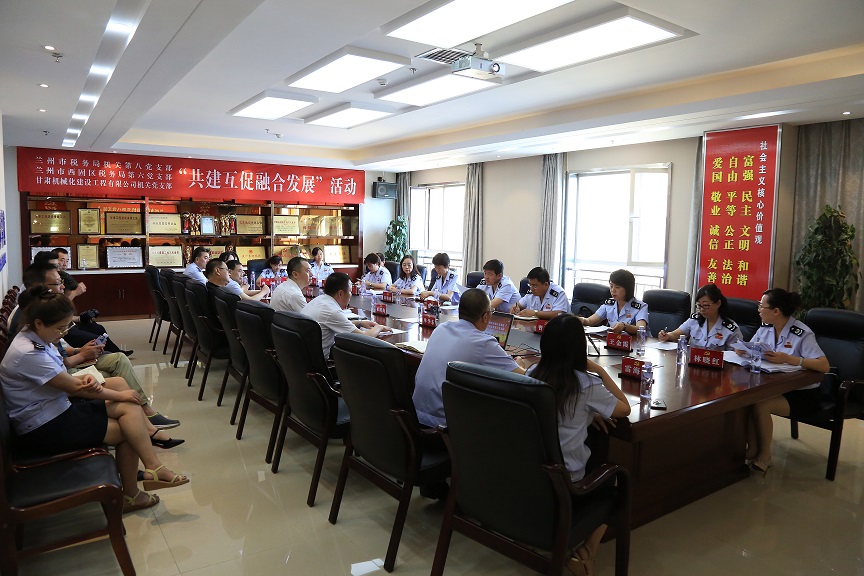 八月的盛夏熱情似火,八月的藍(lán)天明媚無限。在八一建軍節(jié)來臨之際,蘭州市稅務(wù)局第八黨支部、西固區(qū)稅務(wù)局第六支部與公司機(jī)關(guān)黨支部歡聚一堂,召開以“共建互促聚合力,減稅降費(fèi)促發(fā)展”為主題的支部聯(lián)建活動(dòng),三個(gè)支部的黨員干部以“面對面”坦誠交流的方式實(shí)現(xiàn)了“心對心”的傾心相待!